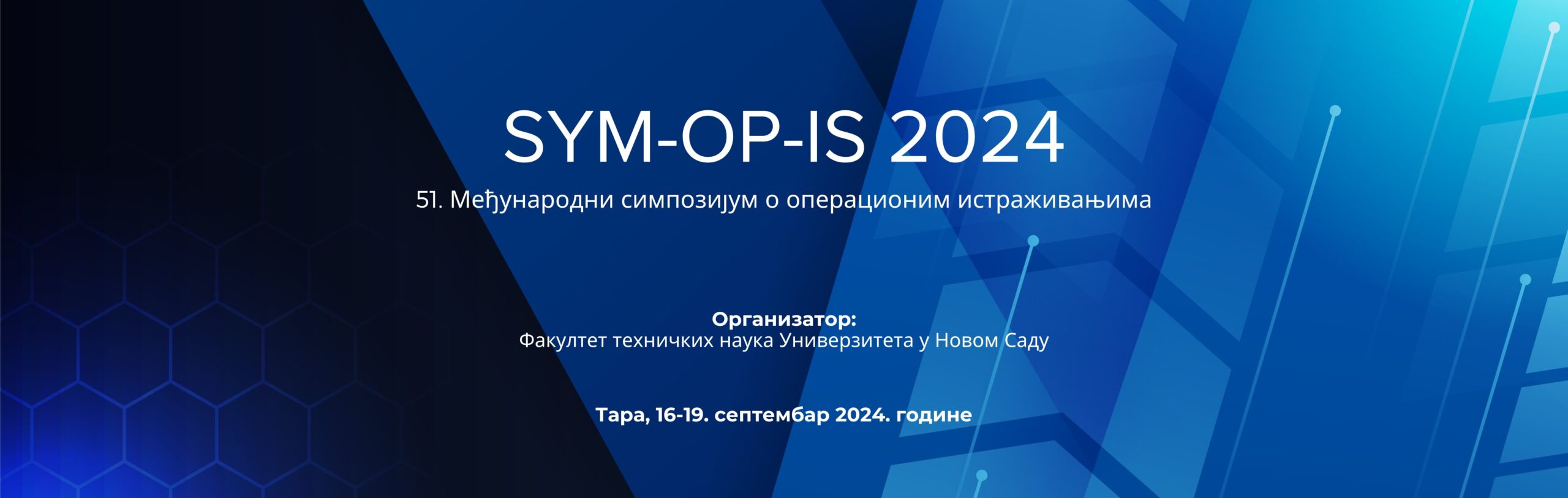 Sa velikim zadovoljstvom vas pozivamo na 51. Simpozijum o operacionim istraživanjima <eng>„SYM-OP-IS 2024”</eng>.$e_ Organizator ovogodišnjeg skupa je Fakultet tehničkih nauka, Univerziteta u Novom Sadu u saradnji sa brojnim visokoškolskim, naučnoistraživačkim i drugim institucijama i udruženjima. <eng>SYM-OP-IS</eng> je skup sa dugom tradicijom, koji od 1974. svake godine okuplja istraživače, predstavnike privrede