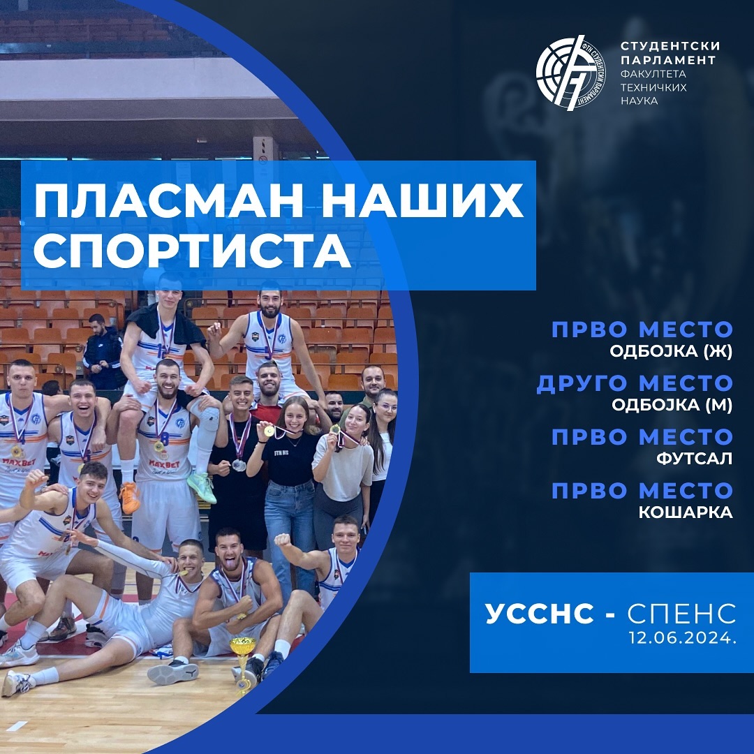Čestitamo našim sportistima na sjajnim rezultatima! 🤩Fakulteta tehničkih nauka je u postigao izvanredan plasman u toku prve Univerzitetske lige @ussns_021, uz plasirana tri prva mesta iz odbojke,košarke i futsala, drugo mesto iz muške odbojke, kao i tri mesta za najbolje sportiste, ponosni smo na naše kolege! 👏🏼