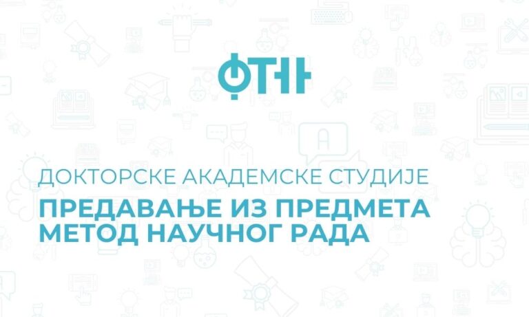 Doktorske akademske studije – Predavanje iz predmeta Metod naučnog rada Poštovani studenti, Obaveštavamo vas da će prvo predavanje iz predmeta Metod naučnog rada biti održano u sledećem terminu: Subota, 20. decembar 2025. od 11:00 časovaLokacija: Svečana sala FTNUvodno obraćanje: Prof. dr Zoran Jeličić, predsednik Saveta doktorskih studija Subota, 20.