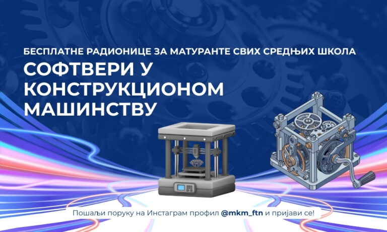 Departman za mehanizaciju i konstrukciono mašinstvo Fakulteta tehničkih nauka organizuje besplatne radionice za maturante srednjih škola pod nazivom „Softveri u konstrukcionom mašinstvu“. Cilj radionica je upoznavanje maturanata sa savremenim inženjerskim softverima koji se koriste na studijskom programu Mehanizacija i konstrukciono mašinstvo, kao i sa osnovnim principima njihovog praktičnog korišćenja u