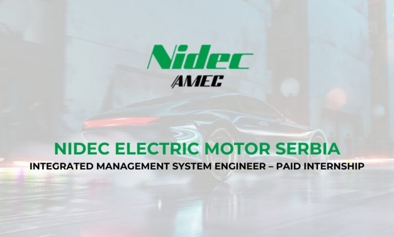 <eng>Nidec Corporation</eng> otvara konkurs za plaćenu studentsku praksu u okviru programa<eng> Learn, Grow and Drive Forward</eng> na poziciji: <eng>Integrated Management System Engineer – Intern</eng> Praksa je namenjena studentima završnih godina osnovnih studija ili master studija tehničkih nauka, koji žele da steknu praktično iskustvo u međunarodnom industrijskom okruženju.