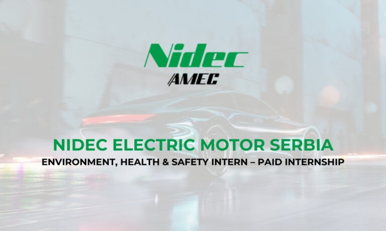 <eng>Nidec Corporation</eng> отвара конкурс за плаћену студентску праксу у оквиру програма <eng>Learn, Grow and Drive Forward</eng> на позицији: <eng>Environment, Health & Safety (EHS) Intern</eng> Praksa je namenjena studentima koji žele da steknu praktično iskustvo u oblasti bezbednosti i zdravlja na radu i zaštite životne sredine u međunarodnom proizvodnom okruženju.
