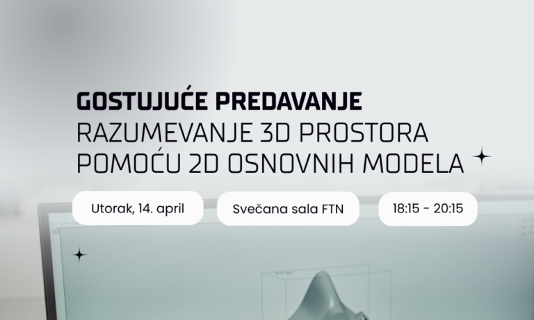 Na Fakultetu tehničkih nauka Univerziteta u Novom Sadu će u utorak 14. aprila 2026. godine, u Svečanoj sali FTN-a od 18:15 časova, biti održano predavanje iz oblasti veštačke inteligencije pod nazivom „Razumevanje 3D prostora pomoću 2D fundamentalnih modela“. Predavanje će održati dr Nikola Popović, istraživač sa instituta INSAIT (<eng>Institute for